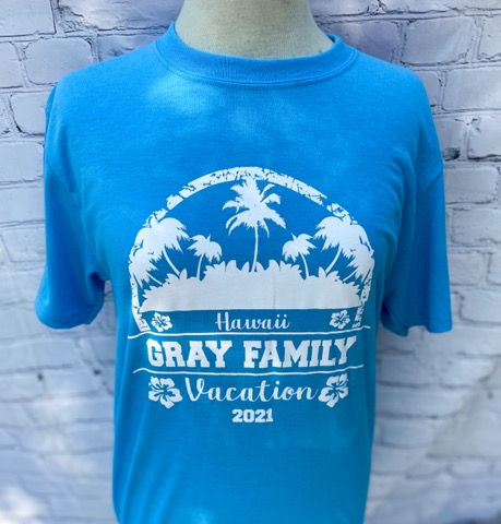 In DTF printing, the image is transferred using transfer paper and then pressed onto the shirt using a heat activated adhesive. The opportunities are limitless as this type of printing allows for many different designs and colors on any type and color of fabric. There is a slight feel to it, more so than screen printing and sublimation, due to it sitting on top of the fabric. No minimum to order.